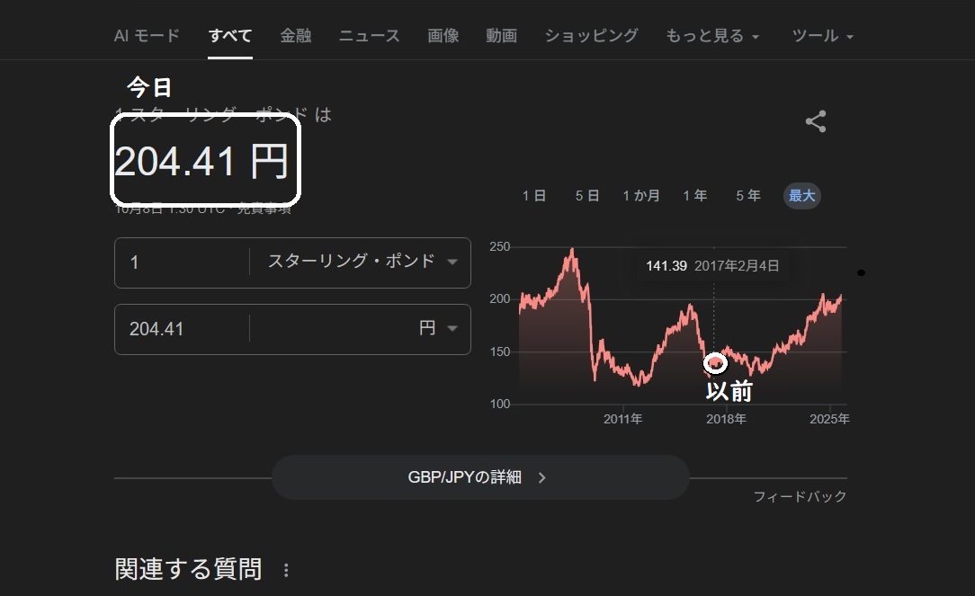丈夫で長持ちする私たちお年寄り向けの(?)ウール靴下が少なくなって、為替レートを見たら円は対ドル・対£に対しても安くなっている。