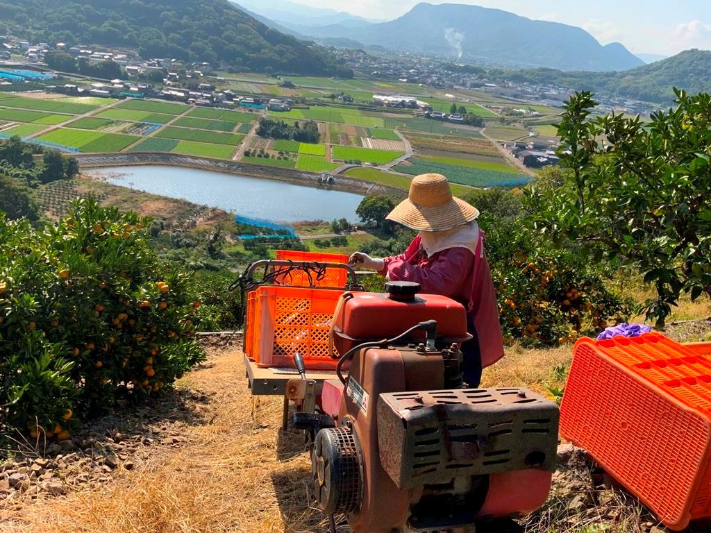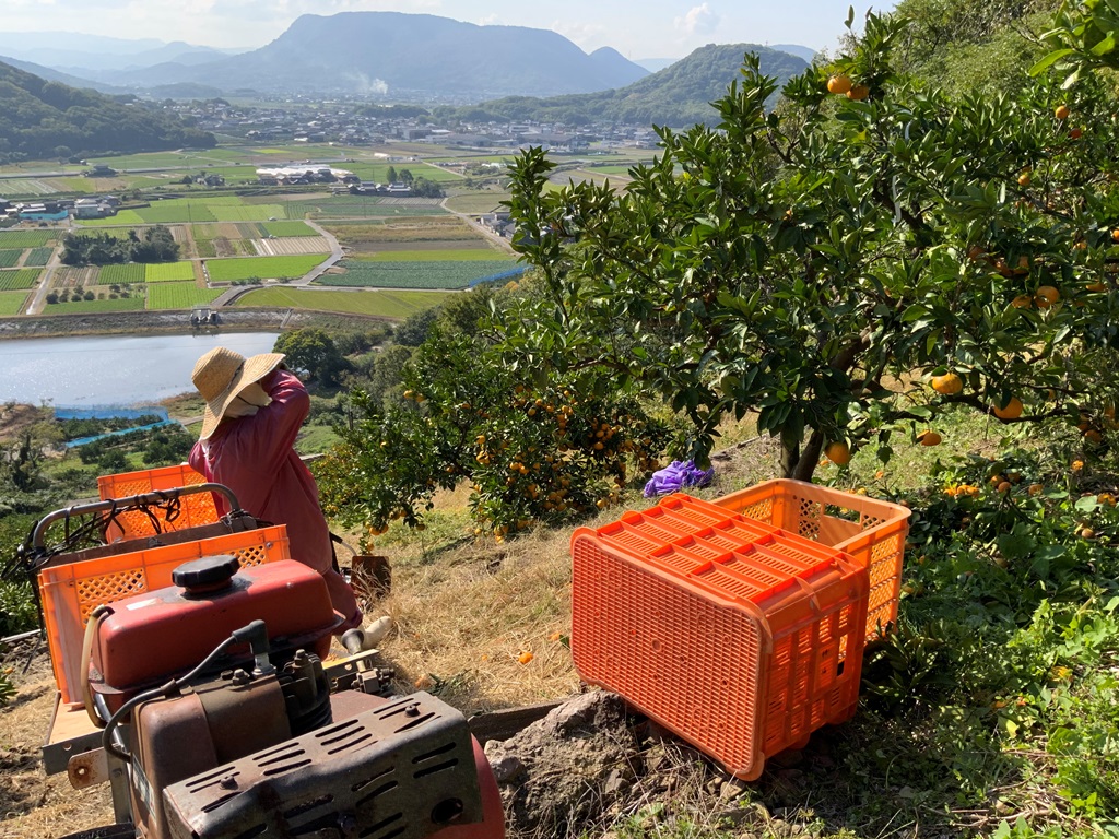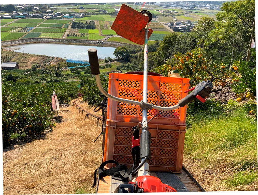 昨日は園主と初めての収穫。 品種は上野です。 園主は先月に消毒作業中に転倒し、骨折したあばら骨の痛みも完治したようですが草刈り姿はまだ少し不安定。