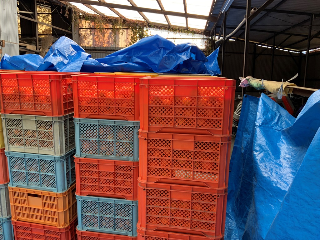 収穫期間が延べ4日観。 早生ミカンの収穫が終わり、年末から3月にかけての中晩柑を残すのみ。 園地の7割が終わった。