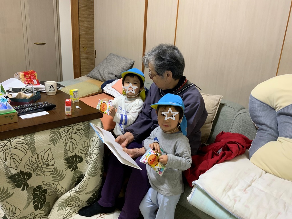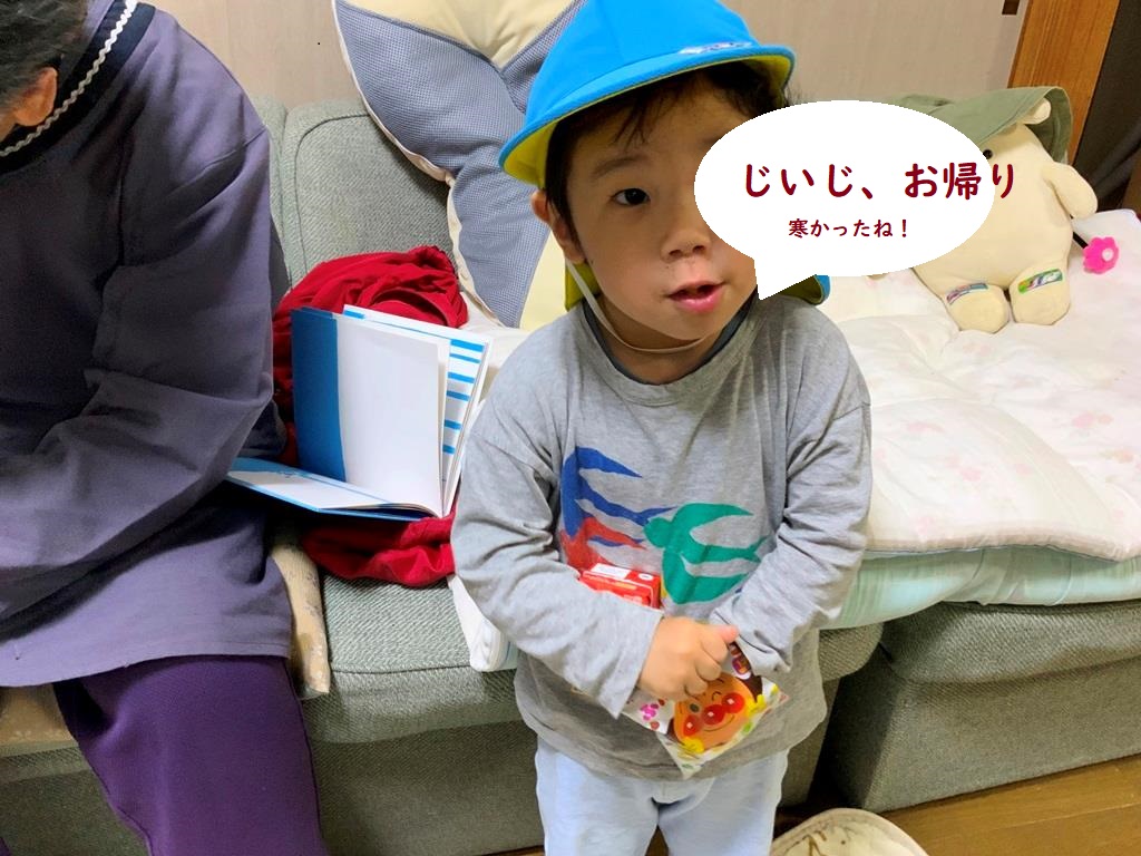 夕方、先ずは4男の迎えが終わり、続いて3人の孫がお父さんにダッコされ帰宅。