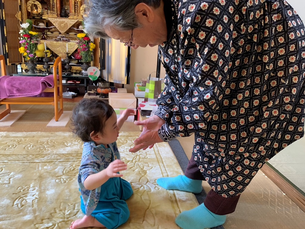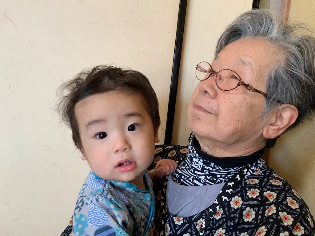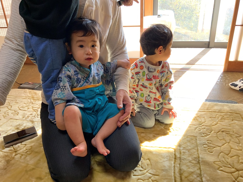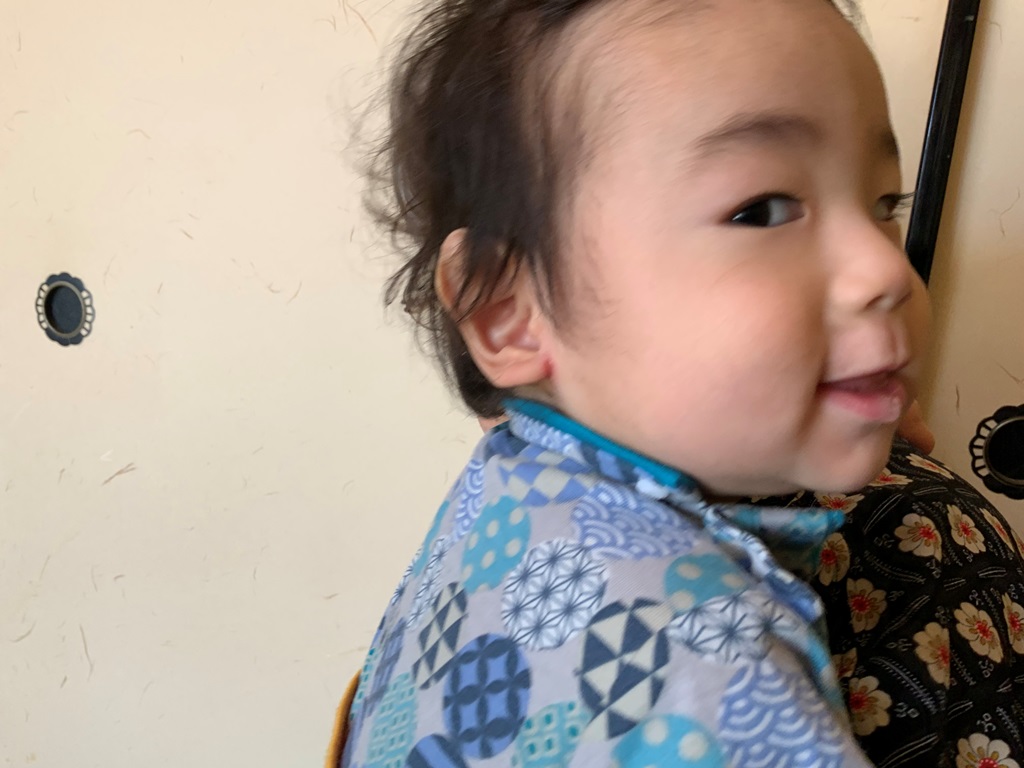 新年に四男のお祝い。 準備が整いました。 「今日はいつもと違うな~」ニコニコ ・ ・ 全く動じませんでした。