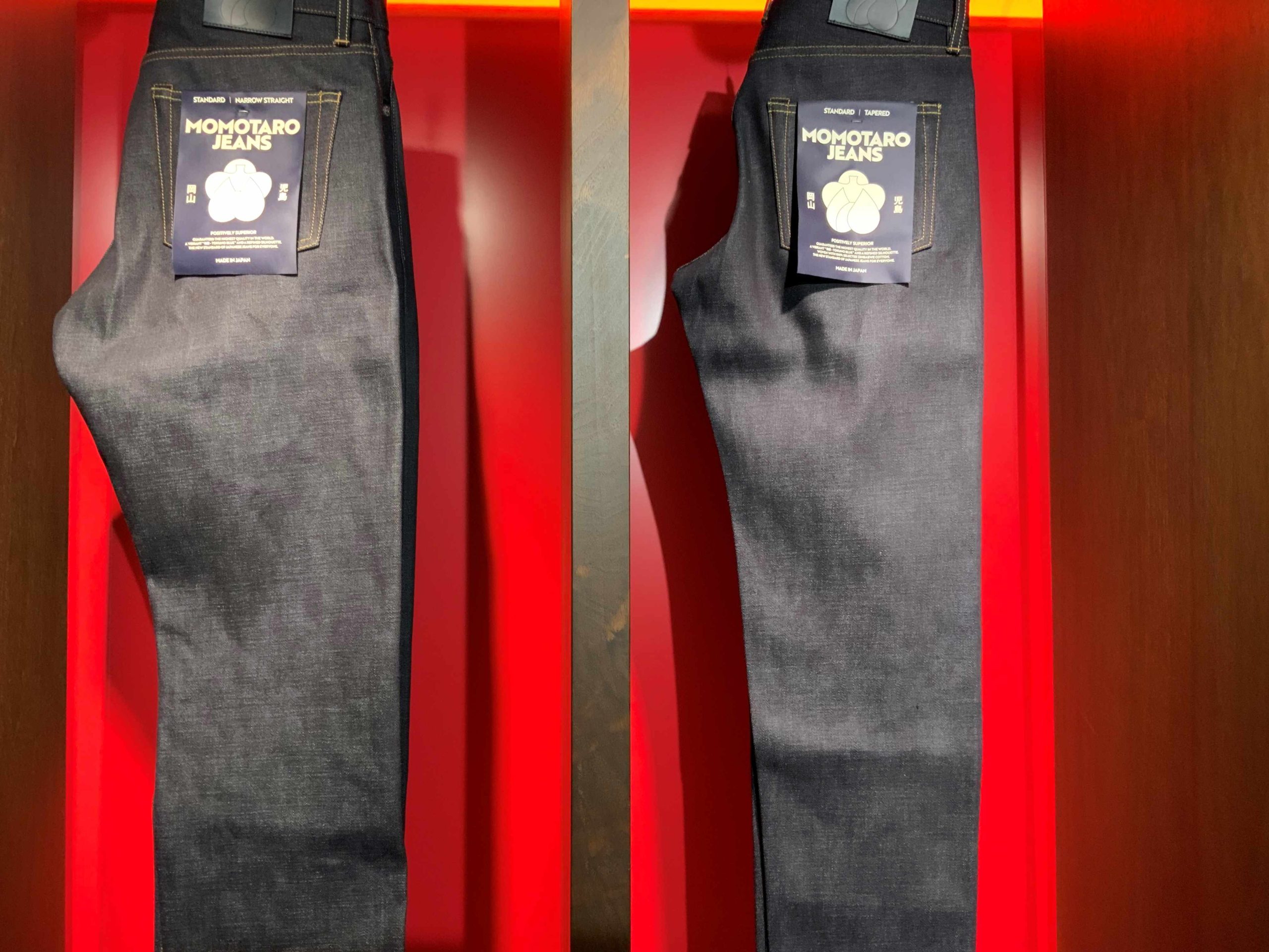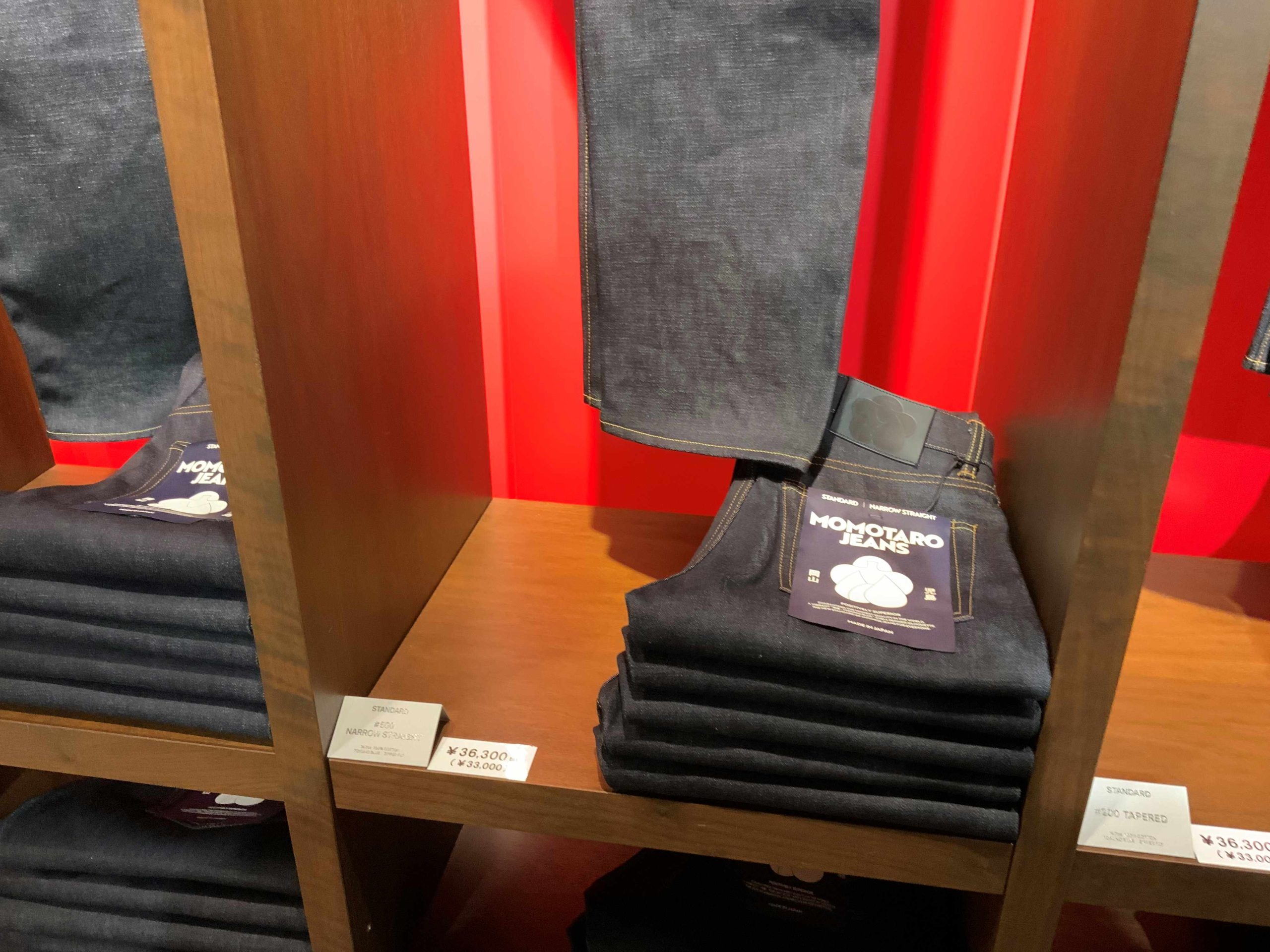 「MOMOTARO JEANS」の桃太郎ジーンズ。